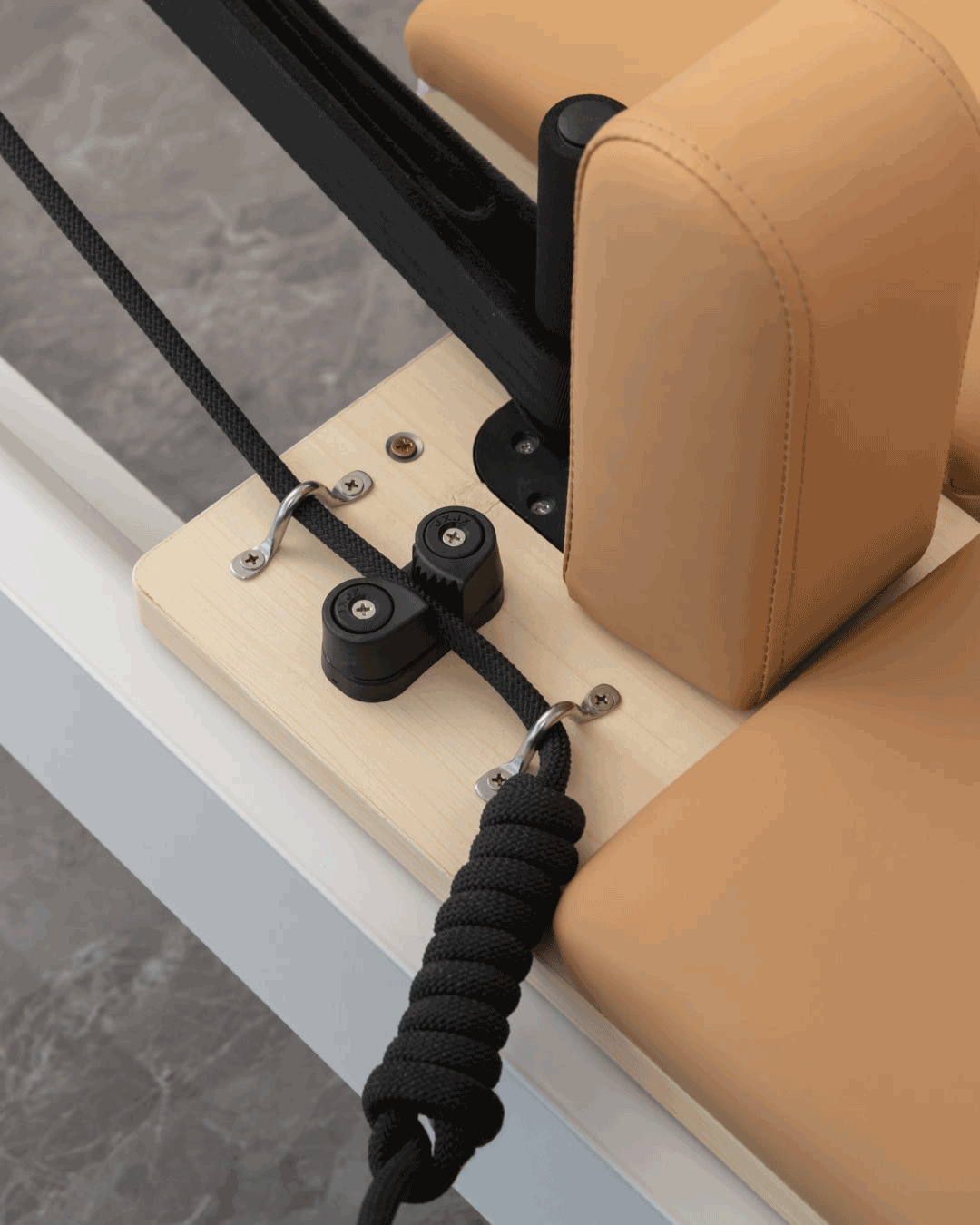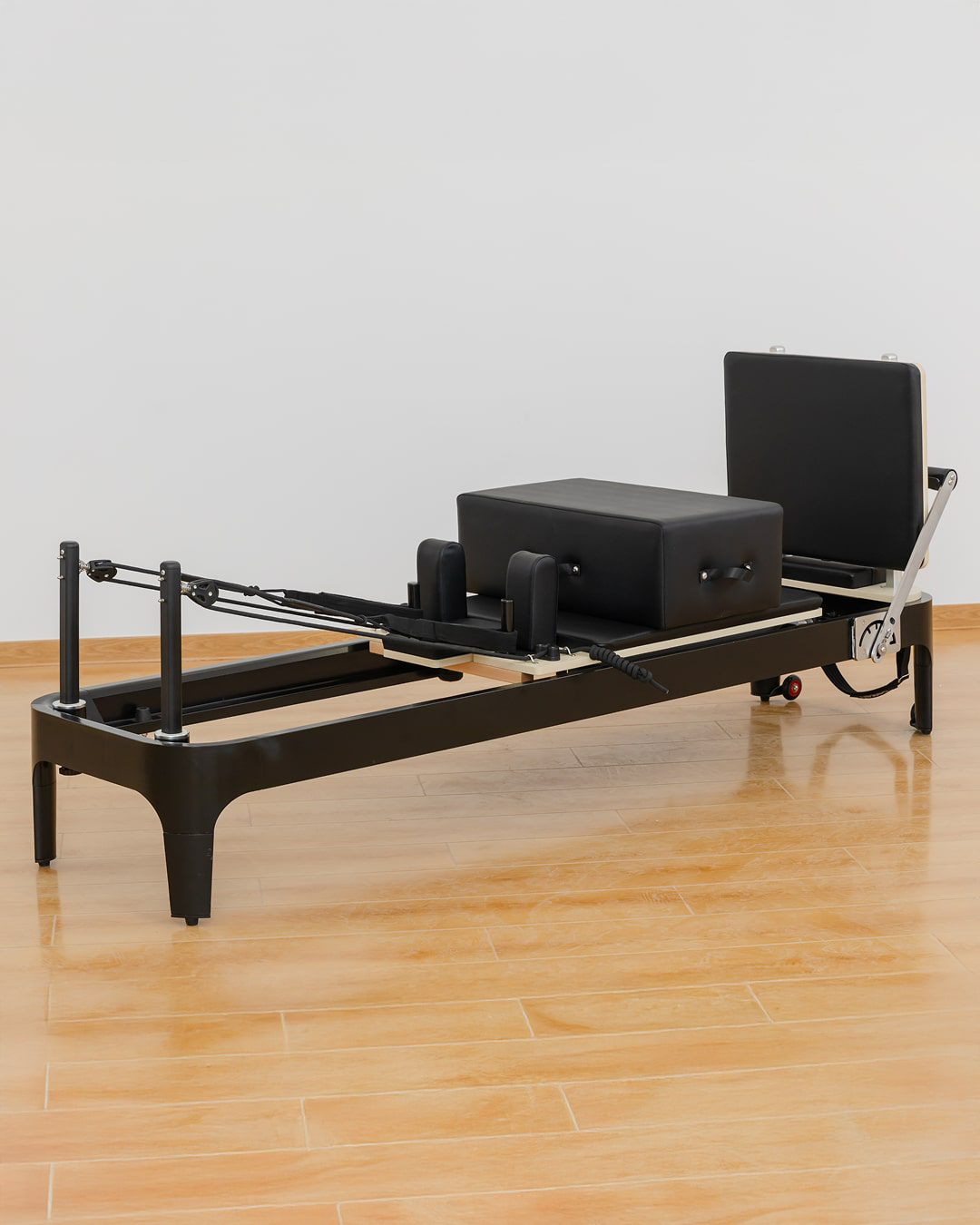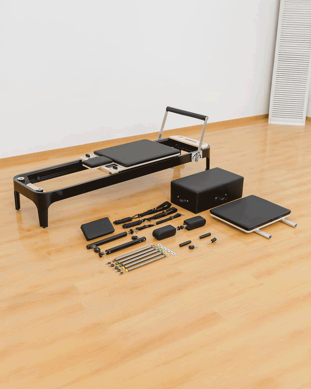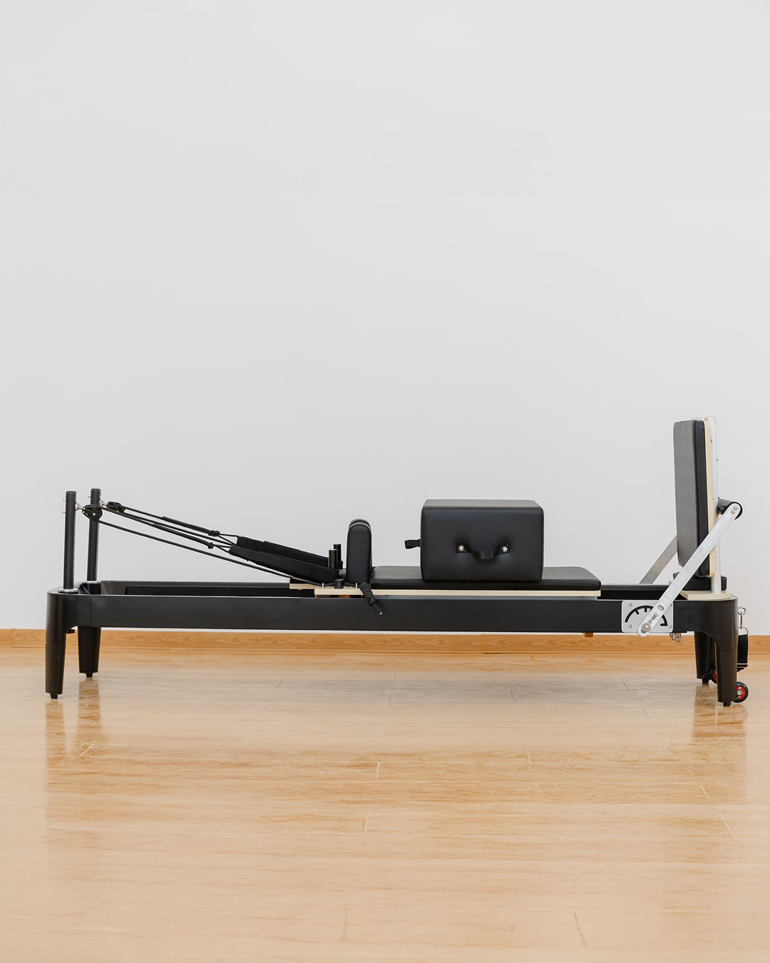Reformer con telaio in lega di alluminio: design ultra-leggero e manovrabilità ottimale per adattarsi a spazi domestici o studi compatti, grazie ad un comodo sistema di stoccaggio.