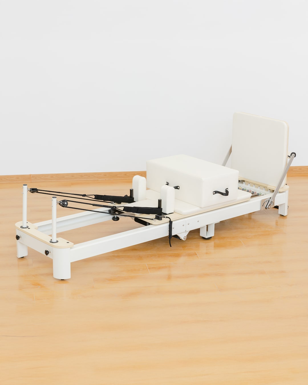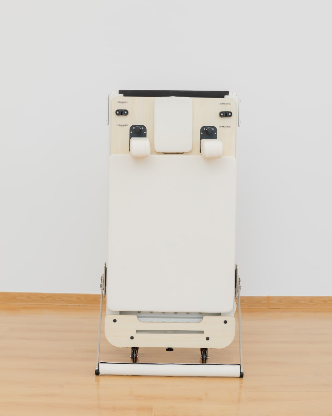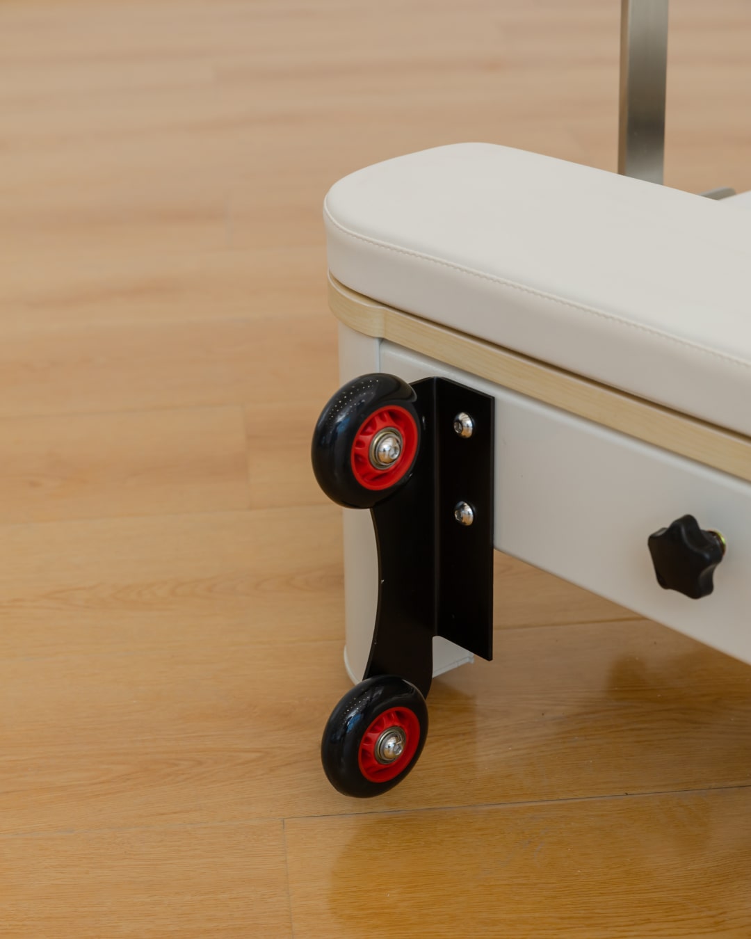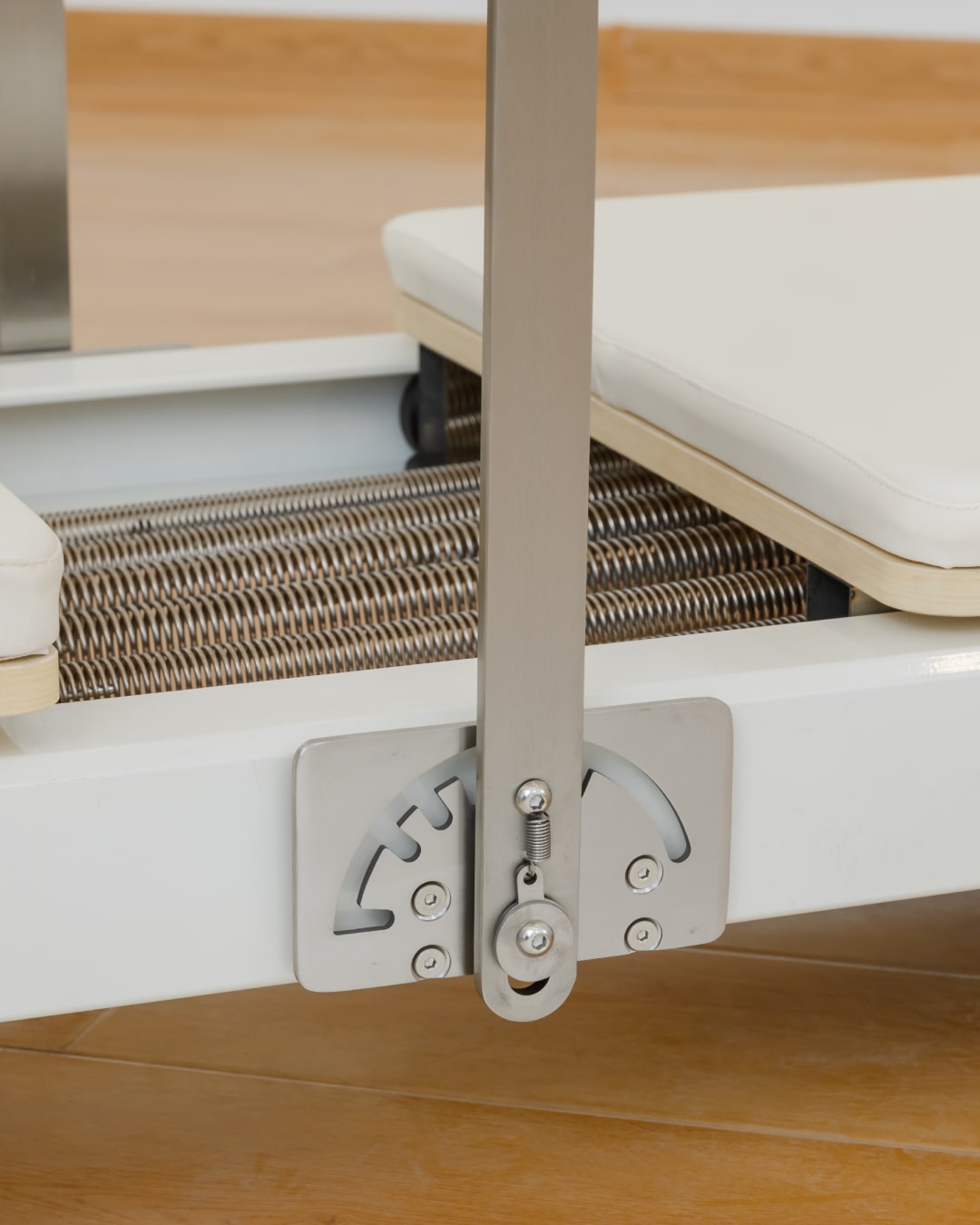 Un reformer pieghevole che unisce la precisione dello studio professionale alla praticità domestica. Progettato per rispettare i principi della contrologia, offre innumerevoli variazioni di esercizi, supportando tutte le posture fondamentali (supino, prono, seduto, in ginocchio). Si trasforma in un ingombro di soli 0.3mq, ideale per home studio e centri con spazi limitati.