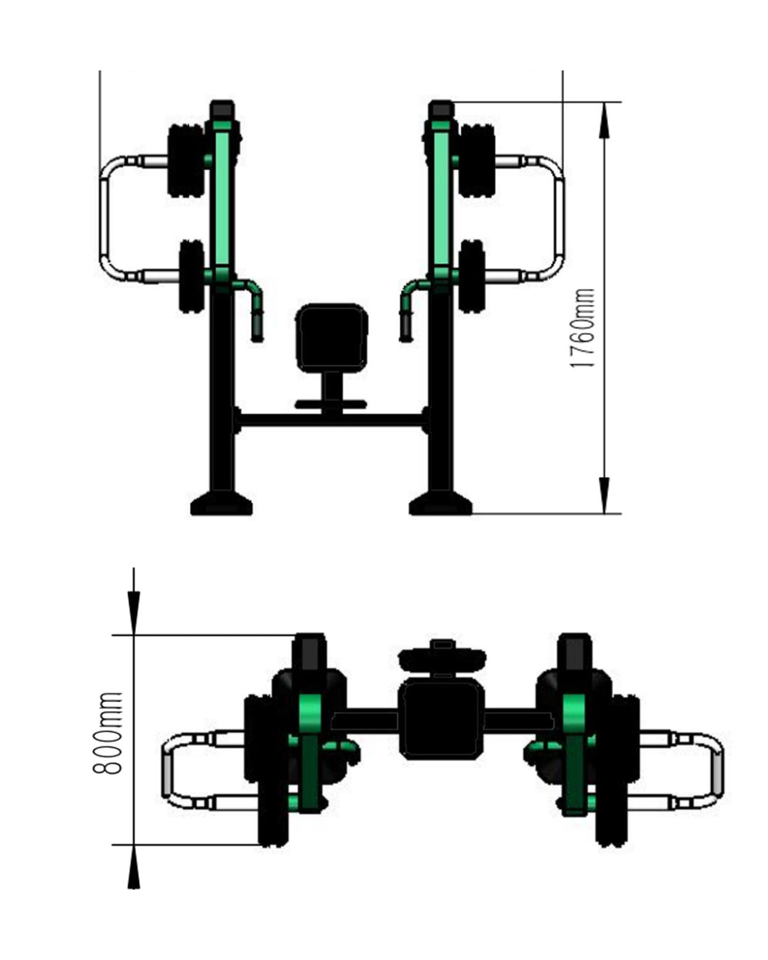 Pro Gym Chest Press Outdoor is the perfect tool for training the pectoral muscles, anterior deltoids and triceps in an outdoor environment. Designed to withstand the elements, it combines strength and stability to ensure a safe and comfortable workout. The adjustable load makes it suitable for users of all levels, from beginners to experts. Ideal for fitness parks, public spaces and outdoor facilities.