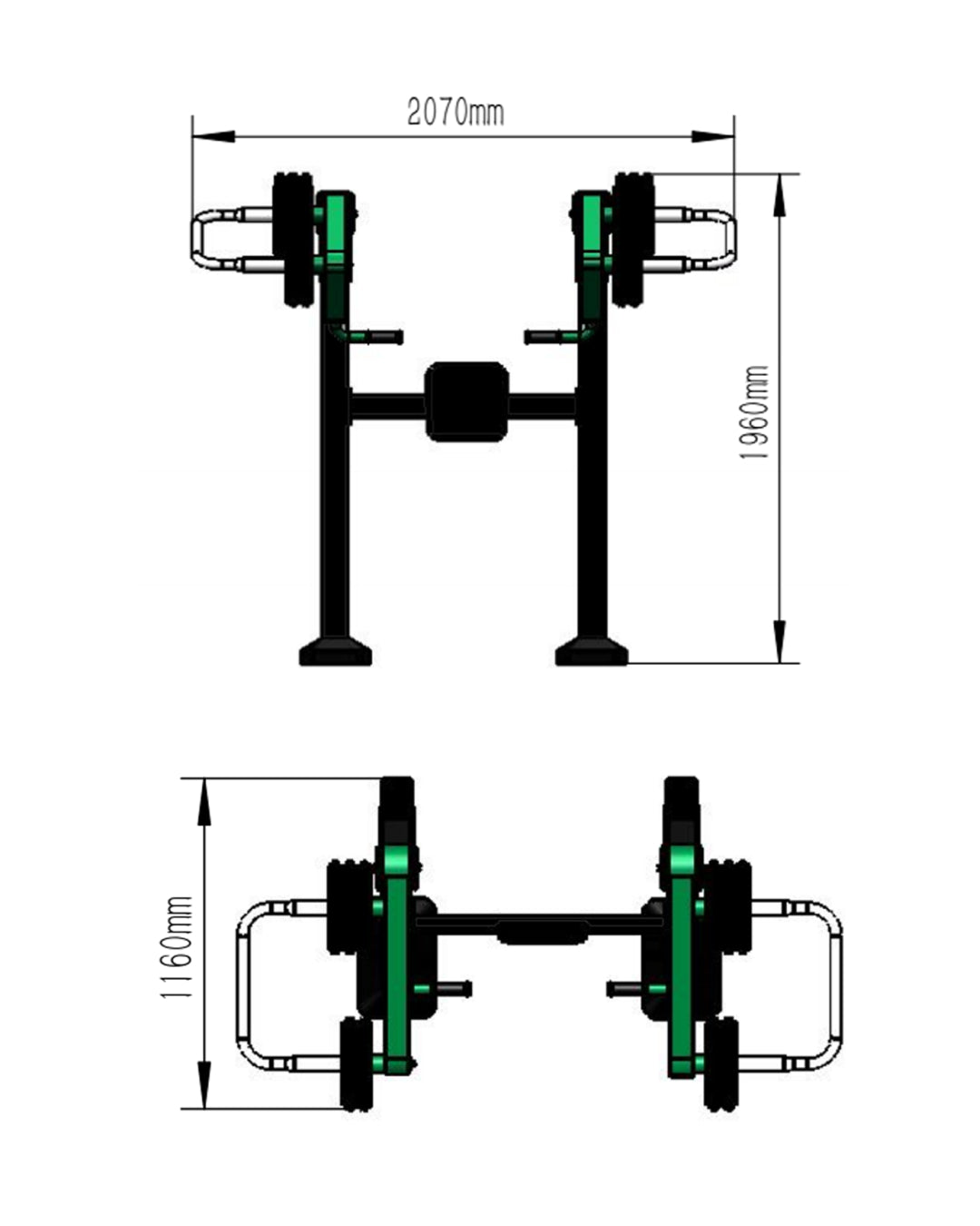 Pro Gym Push Up Outdoor is the ideal tool for training the upper body in open spaces, with a focus on the chest, triceps and shoulders. Made with weather-resistant materials, it guarantees durability and optimal performance in all weather conditions. The adjustable load allows you to customize the intensity of the workout, offering versatility for both beginners and advanced users. Perfect for public parks, outdoor fitness areas and recreational facilities.
