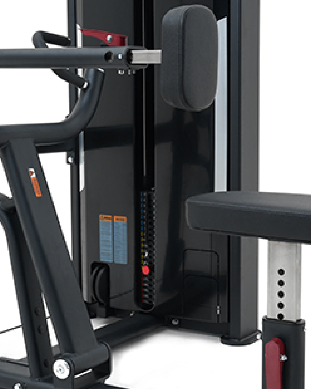 La soluzione professionale per i movimenti di remata: la scelta ideale per lo sviluppo completo dei muscoli dorsali. Il design innovativo con doppia impugnatura consente di attivare diverse aree della schiena. Grazie alla regolazione dell’altezza del sedile in 5 posizioni e del cuscino toracico in 10 posizioni, ogni utente può trovare la configurazione più comoda ed efficace in base alla propria corporatura e lunghezza delle braccia.
