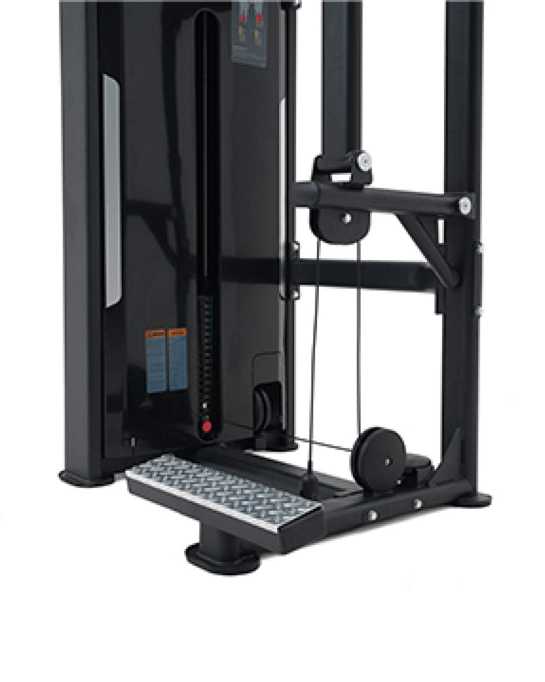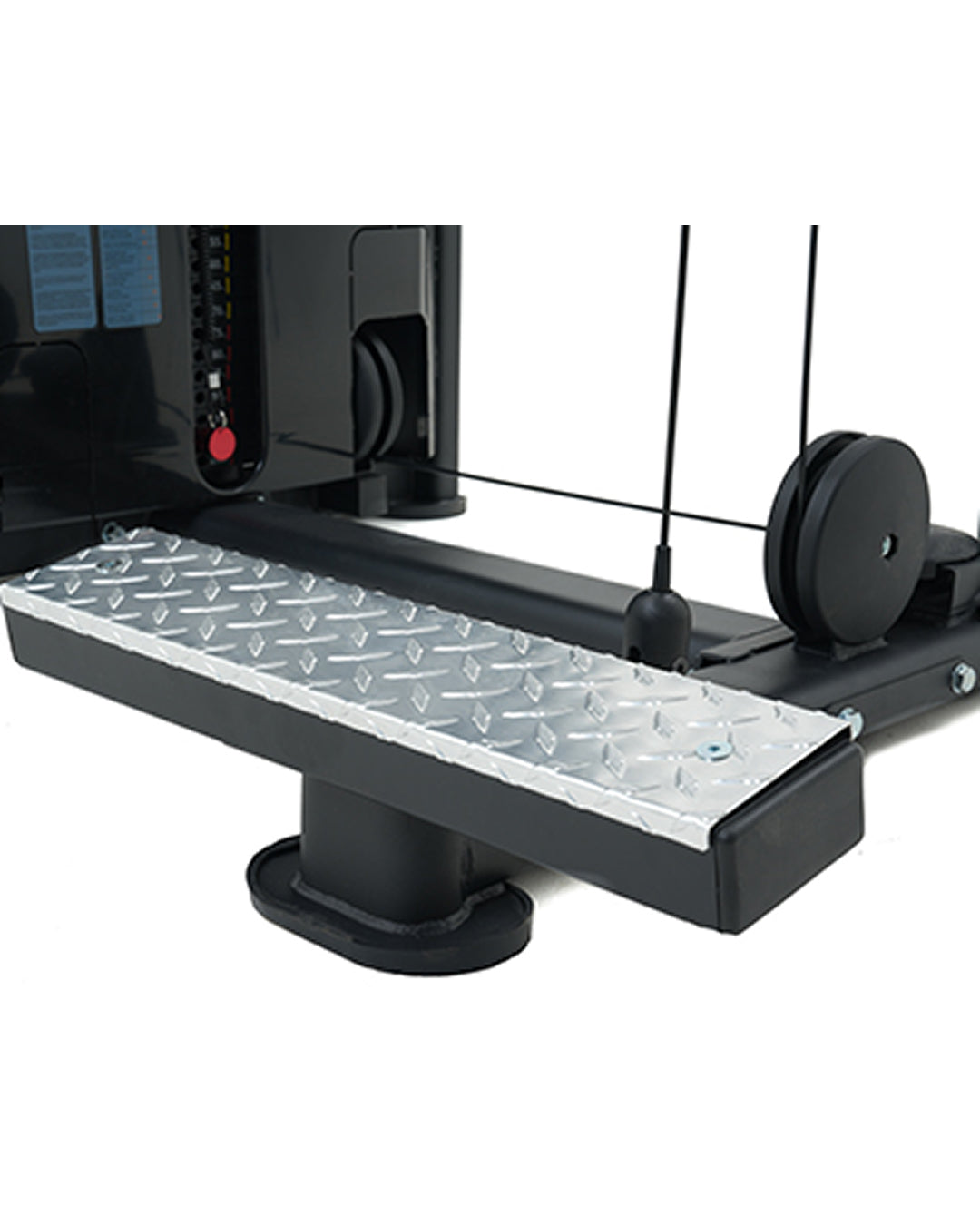 La pedana è costruita in acciaio inox con superficie testurizzata ad alta frizione, offrendo un’eccezionale efficienza nella trasmissione della forza e prevenendo ogni scivolamento. Ogni calf raise è stabile e sicuro, garantendo il massimo coinvolgimento muscolare.