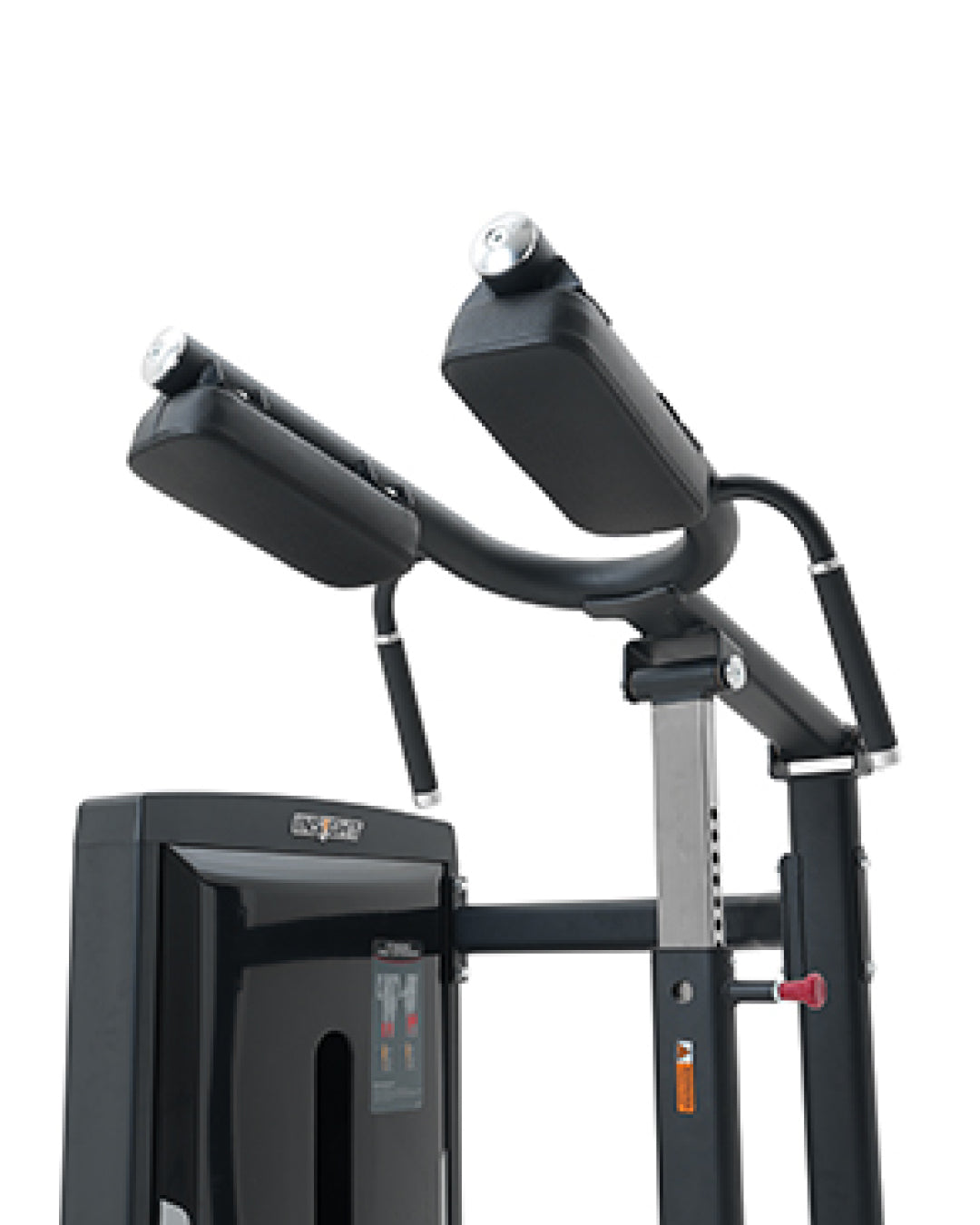 La spalliera con imbottitura ad alta densità offre un supporto confortevole e regolabile in 10 posizioni per adattarsi a ogni utente. Le impugnature inferiori in stile “hammer” migliorano la stabilità del corpo, creando una base solida per un’attivazione profonda del polpaccio.