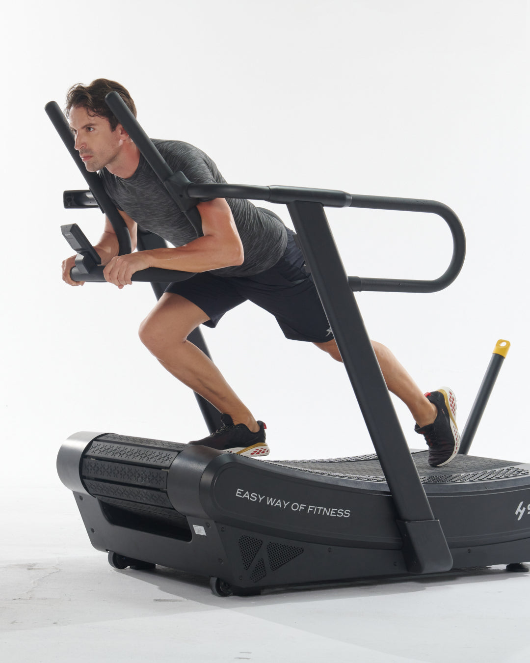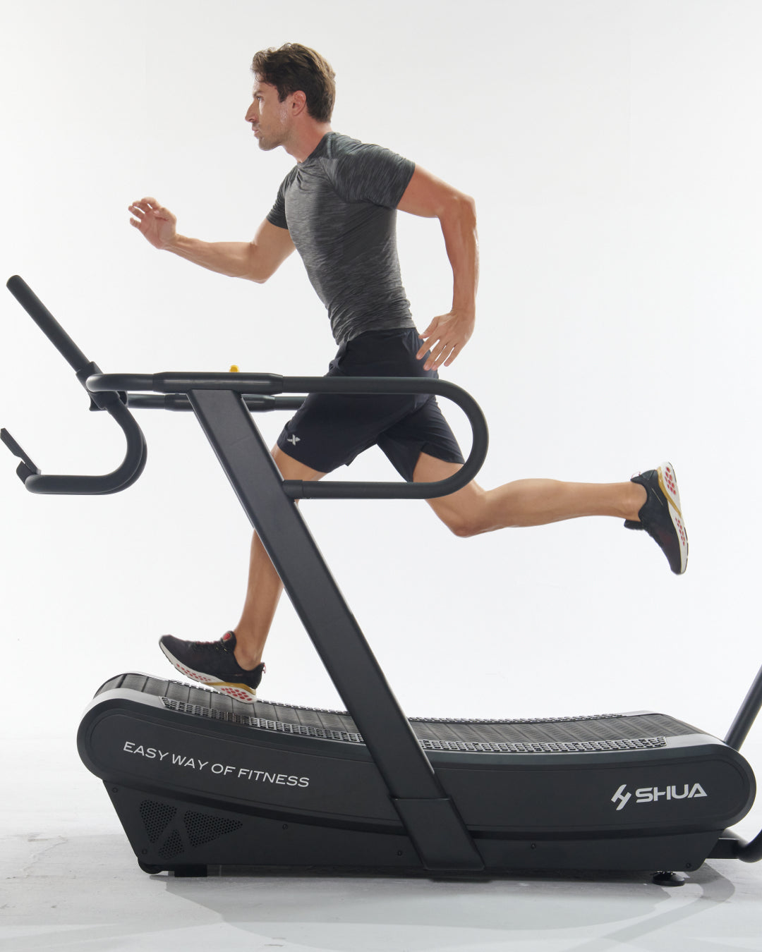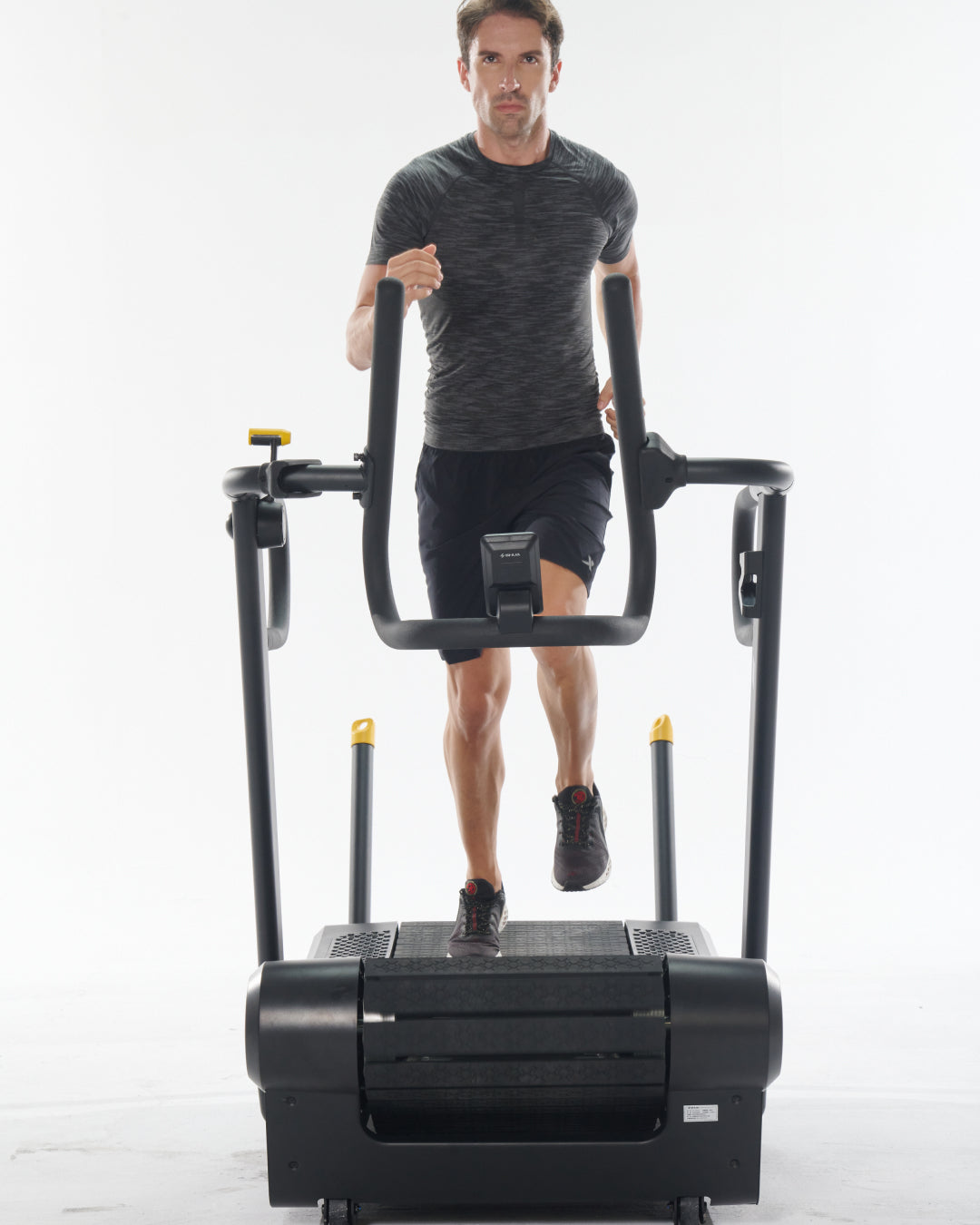 - Cintura Superiore: Cintura in gomma curva che simula la sensazione di correre o camminare in salita, favorendo una biomeccanica corretta durante l'allenamento.